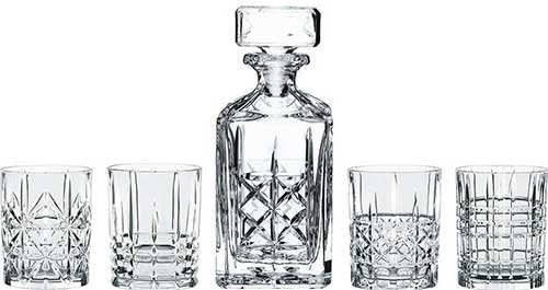 Traditionelles Design mit einem schönen Zusammenspiel von Linien, das ist das Nachtmann Highland Whiskey Set. Das Nachtmann Highland Whisky Set besteht aus einer Serie von 4 Gläsern mit verschiedenen Mustern. Horizontale, vertikale und diagonale Linien in unterschiedlichen Kombinationen spiegeln sich im Design dieser luxuriösen Whiskygläser wider. Darüber hinaus enthält das Set eine luxuriöse Karaffe mit einer Glasglocke. Hier finden Sie auch die klassischen Linien. Die Teile des Sets bestehen aus Kristallglas und lassen die Farbe des Inhalts zur Geltung kommen.