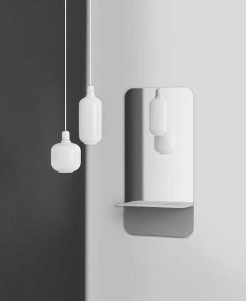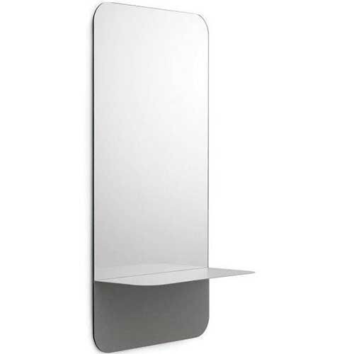 Der Horizon Vertical Spiegel von Normann Copenhagen verbindet mühelos Funktion und Ästhetik. Das einfache Design ist insgeheim sehr gut durchdacht; Das praktische Stahlregal schafft einen "Horizont" und sorgt dafür, dass die darauf platzierten Objekte ver