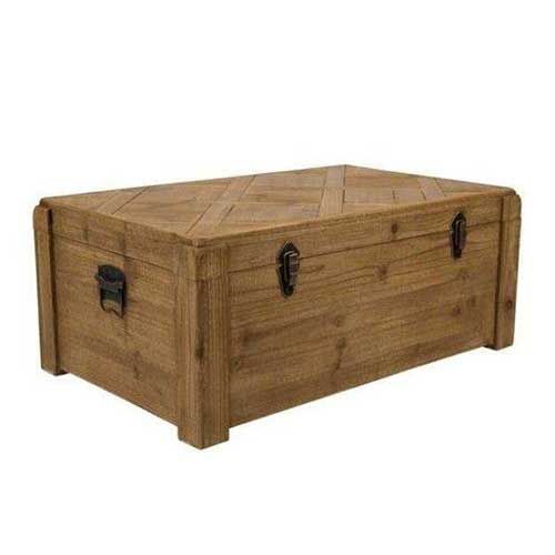 Die Lon Aufbewahrungsbox von Dutchbone hat eine Breite von 82 Zentimetern, eine Tiefe von 52 Zentimetern und eine Höhe von 34 Zentimetern. Die Aufbewahrungsbox ist aus Fichtenholz und hat Scharniere und Bolzen aus Eisen.
