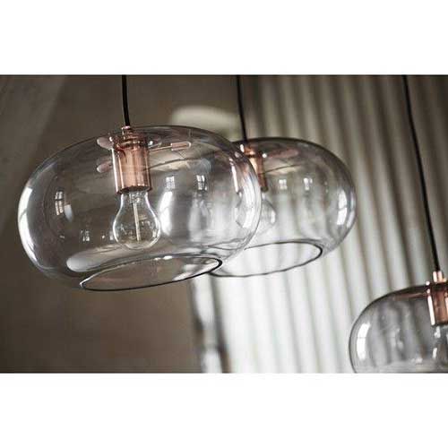 The Frandsen Kobe pendant lamp has a diameter of 30 centimeters and a cord length of 250 centimeters. The lamp is made of glass and is available in the colors opal white and smoked with copper fitting. The white lamp comes with a white ceiling cap and white cord, the transparent cap with a copper ceiling cap and black cord. The Frandsen Kobe pendant lamp has an E27 fitting.