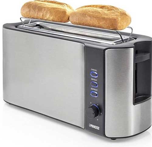 Panini, croissant or baguette? The Princess Long Slot toaster has an extra long and wide slot, making this toaster suitable for roasting two sandwiches next to each other. But you can also prepare a tasty panini or croissant. With the help of the adjustable thermostat you can adjust the degree of browning to six different positions.