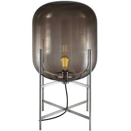 The Oda Medium floor lamp from Pulpo has a height of 85 centimeters and a diameter of 45 centimeters. A hand-blown glass container rests on the base made of steel. For the glass you can choose from different colors, in which colors the frame is available differs per color of the glass.