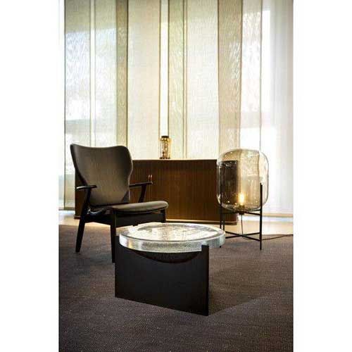 The Oda Medium floor lamp from Pulpo is inspired by photographs of water towers by Bernd and Hilla Becher. Instead of a reservoir for water, however, the Oda lamp is a reservoir for light. The colored glass is a beautiful detail that allows you to connect