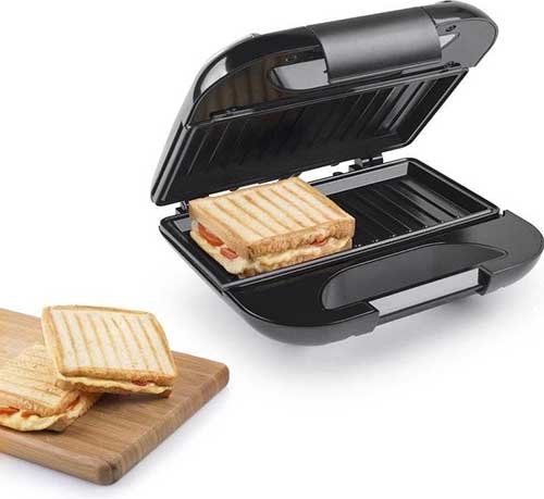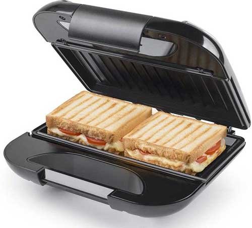 Do you like well-stocked sandwiches? Then choose the Princess 127002 Sandwichmaker. Instead of a preformed shape, this sandwich maker has two grill plates through which you get nice grill stripes on your sandwich. Go for traditional ham and cheese or try a sandwich with brie, pears and walnuts. Or go for pulled pork with barbecue sauce. The possibilities are endless.