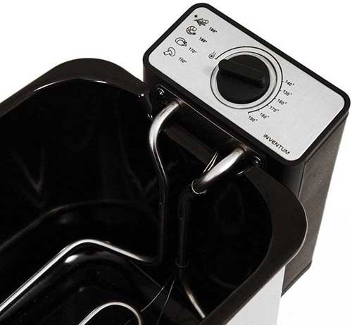 De Inventum koude zone friteuse GF645F heeft een inhoud van 4 liter en een vermogen van 3000 watt. De temperatuur stel je gemakkelijk in met de draaiknoppen, tot maximaal 190°C. De friteuse is voorzien van een uitneembare binnenpan met geëmailleerde coati
