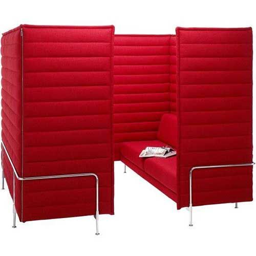 Sommige banken overstijgen het begrip ‘meubelstuk’ en zijn een eigen ruimte in een andere ruimte. De Alcove Cabin 3-zits Extra High van Vitra is zo’n bank. Door de extra hoge rugleuningen en zijpanelen van bijna 190 centimeter is deze cabin een rustig eilandje op de drukke werkvloer.